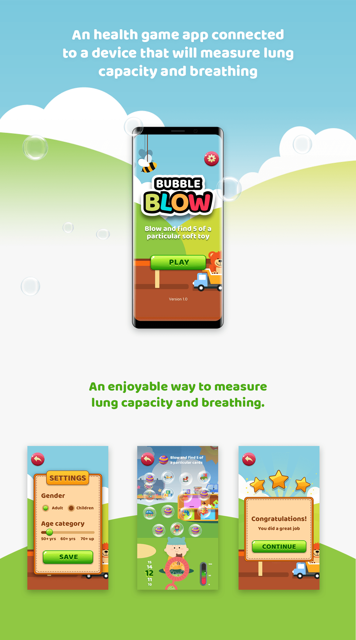 Bubble Blow Health Game App A health care game app that will get patient lung capacity and breathing records.
